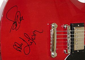 by certain artists, and guess who one of the guitars was signed by? Geddy